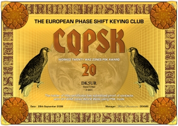 Die CQ PSK (WAZ) Diplomserie wurde vom Europäischen PSK Club am 20. Mai 2007 herausgeben. Ziel dieser Diplomserie ist das Arbeiten bzw. Hören von möglichst vielen CQ (WAZ) Zonen. Das CQPSK-10, CQPSK-20, CQPSK-30 und CQPSK-40 Diplom kann von jedem lizenzierten Funkamateur, jeder Klubstation und jedem SWL nach diesen Regeln beantragt werden, wenn nachgewiesen werden kann, dass entsprechend viele CQ (WAZ) Zonen in PSK Modi gearbeitet bzw. gehört wurden. Der Antagsteller muß EPC Mitglied sein. Es zählen nur Verbindungen auf Frequenzen unter 145 MHz. Es zählen alle Verbindungen nach dem 01. Januar 2000.