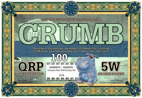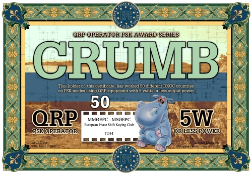 Die CRUMB QRP Operator PSK Diplomserie wurde vom Europäischen PSK Club am 22. Mai 2008 herausgeben. Die CRUMB Diplome basieren auf der DXCC Länderliste (im Moment gibt es 338 "Länder"). Das CRUMB 25, CRUMB 50, CRUMB 75 und CRUMB 100 Diplom kann von jedem lizenzierten Funkamateur und jeder Klubstation nach diesen Regeln beantragt werden, wenn nachgewiesen werden kann, dass entsprechend viele DXCC Länder mit QRP-Leistung in den veschiedenen PSK Modi gearbeitet wurden. Kontakte mit gelöschten DXCC Ländern gelten nicht. Der Antagsteller muß EPC Mitglied sein. Es zählen alle Verbindungen nach dem 01. Januar 2000.