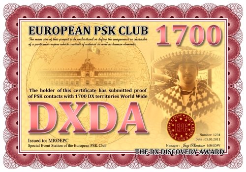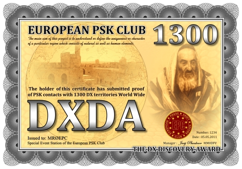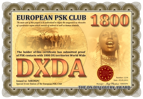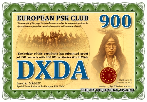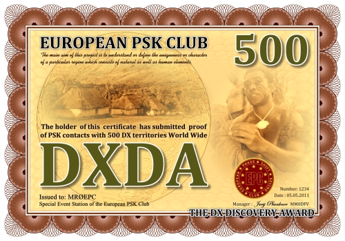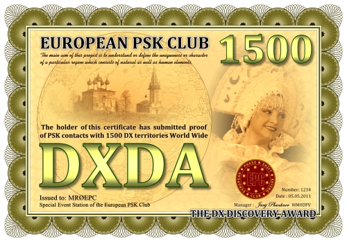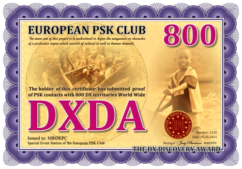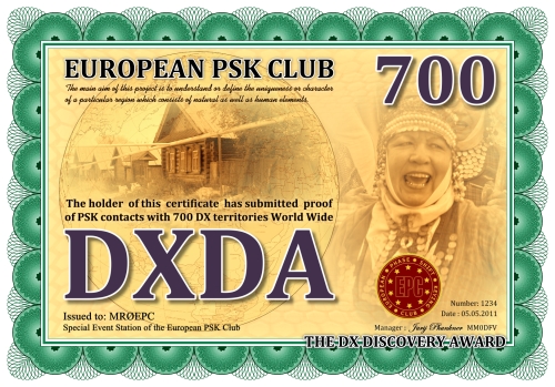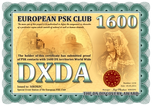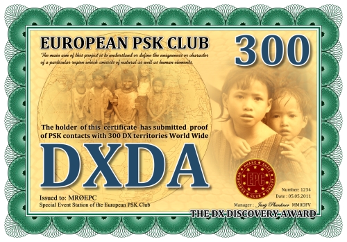 Die DXDA-Diplomserie wurde aus Anlass des 5. Jahrestages des Europäischen PSK Clubs herausgegeben. Es wurde am 1. Mai 2011 durch den Europäischen PSK Club entwickelt, um 2-Weg PSK-Verbindungen mit sogenannten DXDA Territorien weltweit zu fördern. Diese Gebiete sind in der DXDA Gebiete Liste aufgeführt. Insgesamt gibt es 3777 unterschiedliche DXDA Gebiete (Stand 6. Mai 2011). Bei Kontakten mit DX-Stationen müssen diese nicht Mitglied des EPC sein. Die Diplomserie hat keine Zeit- und Datumseinschränkungen. Kontakte mit DXDA-Gebieten zählen, wenn sie am Tag der Beantragung gültig sind. Wenn ein DXDA-Gebiet den Status «deleted» bekommt, dann zählt der Kontakt für das neue DXDA-Gebiet, in Abhängigkeit des Standortes der gearbeiteten Station. Alle Änderungen, neue und/oder gelöschte Gebiete werden in der DXDA Gebiete Liste aufgeführt.