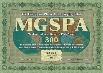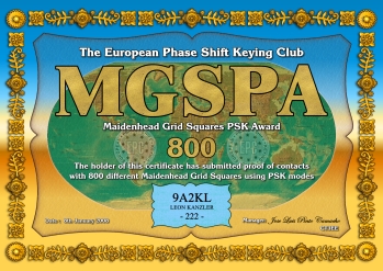 Die Maidenhead Grid Square PSK Diplomserie (MGSPA) wurde vom Europäischen PSK Club am 11. April 2007 herausgeben. Die MGSPA Diplome wurden geschaffen um Kontakte mit möglichst vielen Maidenhead Lokator Großfeldern weltweit zu fördern. Das MGSPA-100, MGSPA-200, MGSPA-300, MGSPA-400, MGSPA-500, MGSPA-600, MGSPA-700, MGSPA-800, MGSPA-900 und das MGSPA-1000 Diplom kann von jedem lizenzierten Funkamateur, jeder Klubstation und jedem SWL nach diesen Regeln beantragt werden, wenn nachgewiesen werden kann, dass Verbindungen mit entsprechend vielen verschiedenen Maidenhead Lokator Großfeldern in PSK Modi gearbeitet bzw. gehört wurden.