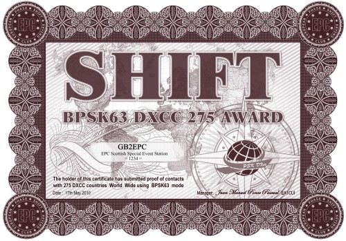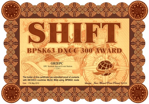 Die SHIFT Diplomserie wurde am 17. Mai 2010 durch den Europäischen PSK Club gestiftet. Damit wurde eine Serie von DX - Diplomen geschaffen, die auf der DXCC - Länderliste basiert.