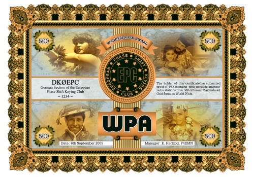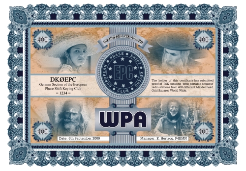 Das WPA 100, WPA 200, WPA 300, WPA 400, WPA 500 und WPA 600 Diplom kann von jedem lizensierten Funkamateur, jeder Klubstation und jedem SWL nach diesen Regeln beantragt werden, wenn nachgewiesen werden kann, dass portable- oder mobil-Stationen aus 100, 200, 300, 400, 500 oder 600 unterschiedlichen Locatorfeldern in den PSK-Modi (B(Q)PSK31, B(Q)PSK63 oder B(Q)PSK125) gearbeitet bzw. gehört wurden. Es zählen nur Verbindungen auf Kurzwelle (1,8 - 30 MHz). Dieselbe portable oder mobile Station ist gültig, wenn sie aus unterschiedlichen Locatorfeldern aktiv ist. Jede gearbeitete/ gehörte Station muss einen portable- oder mobil-Zusatz am Rufzeichen vorweisen, wie z.B. /p, /m, /1...0, usw.. Allgemein wird unter portable-Stationen eine Station außerhalb des Heimat-QTHs verstanden. Wenn es machbar ist, wird eine Liste von speziellen portable-Aktivitäten von Stationen ohne eindeutige Identifikation (wie z.B. MS0DGR, MS0EPC,..) veröffentlicht. Maritime mobile Stationen ( /mm) sind nicht gültig für diese Diplomserie. Alle Verbindungen müssen nach dem 10. Juni 2006 getätigt worden sein.