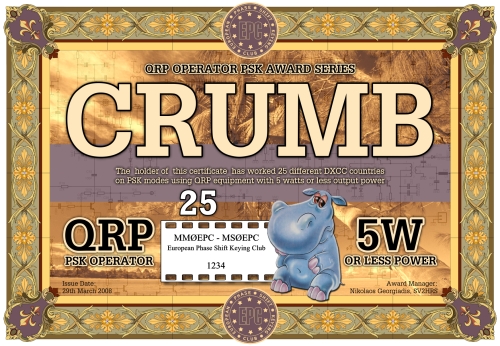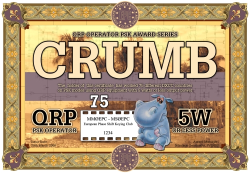 Die CRUMB QRP Operator PSK Diplomserie wurde vom Europäischen PSK Club am 22. Mai 2008 herausgeben. Die CRUMB Diplome basieren auf der DXCC Länderliste (im Moment gibt es 338 "Länder"). Das CRUMB 25, CRUMB 50, CRUMB 75 und CRUMB 100 Diplom kann von jedem lizenzierten Funkamateur und jeder Klubstation nach diesen Regeln beantragt werden, wenn nachgewiesen werden kann, dass entsprechend viele DXCC Länder mit QRP-Leistung in den veschiedenen PSK Modi gearbeitet wurden. Kontakte mit gelöschten DXCC Ländern gelten nicht. Der Antagsteller muß EPC Mitglied sein. Es zählen alle Verbindungen nach dem 01. Januar 2000.