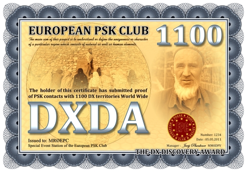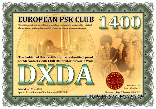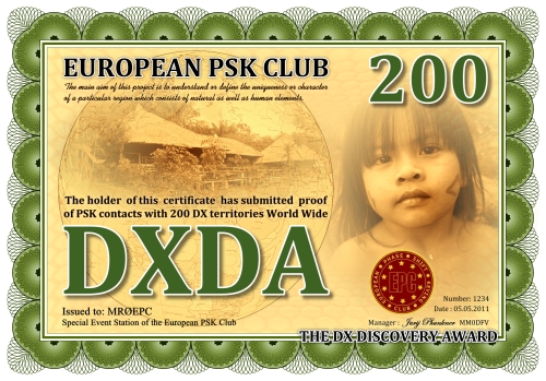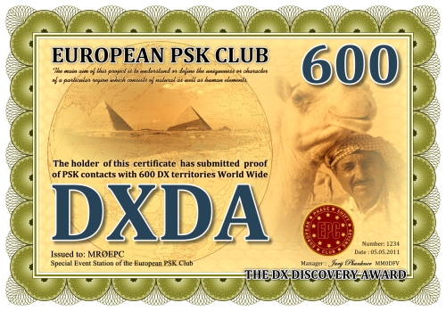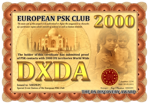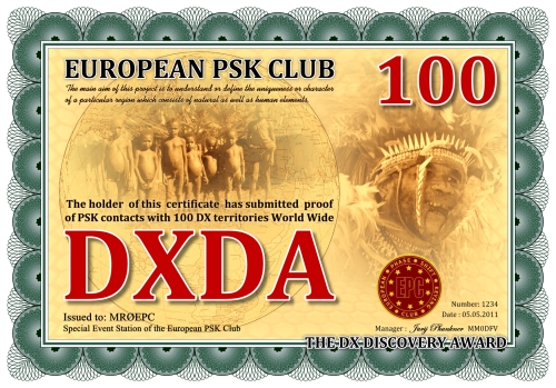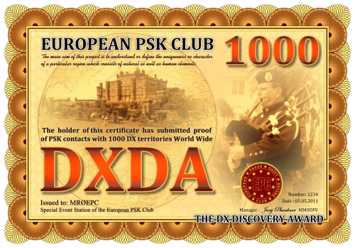 Die DXDA-Diplomserie wurde aus Anlass des 5. Jahrestages des Europäischen PSK Clubs herausgegeben. Es wurde am 1. Mai 2011 durch den Europäischen PSK Club entwickelt, um 2-Weg PSK-Verbindungen mit sogenannten DXDA Territorien weltweit zu fördern. Diese Gebiete sind in der DXDA Gebiete Liste aufgeführt. Insgesamt gibt es 3777 unterschiedliche DXDA Gebiete (Stand 6. Mai 2011). Bei Kontakten mit DX-Stationen müssen diese nicht Mitglied des EPC sein. Die Diplomserie hat keine Zeit- und Datumseinschränkungen. Kontakte mit DXDA-Gebieten zählen, wenn sie am Tag der Beantragung gültig sind. Wenn ein DXDA-Gebiet den Status «deleted» bekommt, dann zählt der Kontakt für das neue DXDA-Gebiet, in Abhängigkeit des Standortes der gearbeiteten Station. Alle Änderungen, neue und/oder gelöschte Gebiete werden in der DXDA Gebiete Liste aufgeführt.
