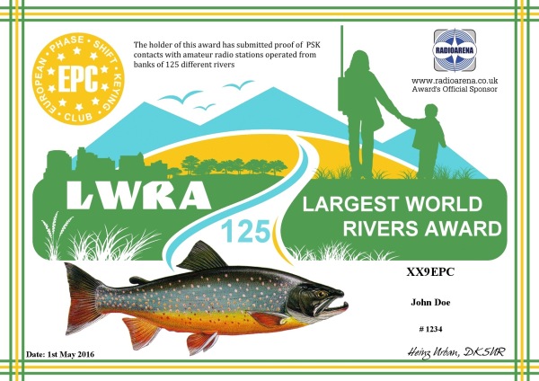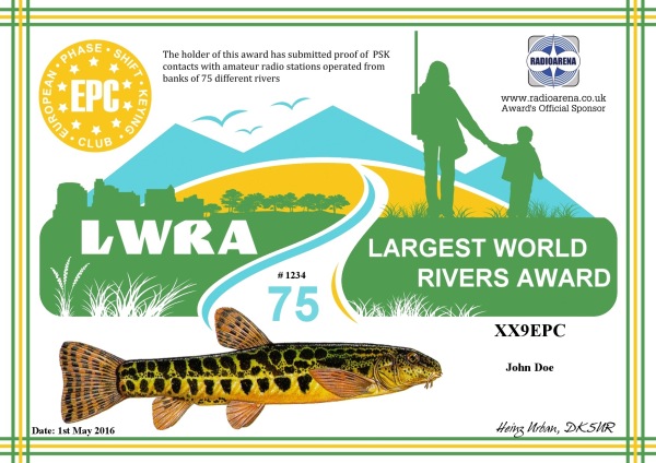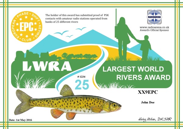 The Largest World Rivers Award (LWRA) is dedicated to the 10th Anniversary of the European PSK Club. It has been sponsored by Radioarena UK Ltd and devised by the European PSK Club on 1st May, 2016 for two-way PSK contacts with amateur radio stations operating from banks of the largest world rivers longer than 1000 kilometres as per our table listed below. Contacted LWRA expeditions (stations) don't need to be members of the European PSK Club. This award series has no time or date restrictions.