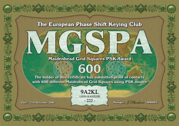 Die Maidenhead Grid Square PSK Diplomserie (MGSPA) wurde vom Europäischen PSK Club am 11. April 2007 herausgeben. Die MGSPA Diplome wurden geschaffen um Kontakte mit möglichst vielen Maidenhead Lokator Großfeldern weltweit zu fördern. Das MGSPA-100, MGSPA-200, MGSPA-300, MGSPA-400, MGSPA-500, MGSPA-600, MGSPA-700, MGSPA-800, MGSPA-900 und das MGSPA-1000 Diplom kann von jedem lizenzierten Funkamateur, jeder Klubstation und jedem SWL nach diesen Regeln beantragt werden, wenn nachgewiesen werden kann, dass Verbindungen mit entsprechend vielen verschiedenen Maidenhead Lokator Großfeldern in PSK Modi gearbeitet bzw. gehört wurden.