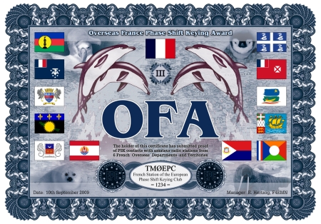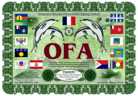 Das OFA IV, OFA III, OFA II und OFA I Diplom kann von jedem lizensierten Funkamateur, jeder Klubstation und jedem SWL nach diesen Regeln beantragt werden, wenn nachgewiesen werden kann, dass Stationen in 3, 6, 9 oder 12 unterschiedlichen Französischen Übersee-Departements und Territorien in den PSK-Modi (B(Q)PSK31, B(Q)PSK63 oder B(Q)PSK125) gearbeitet bzw. gehört wurden. Es zählen nur Verbindungen auf Kurzwelle (1,8 - 30 MHz). Jedes Gebiet zählt nur einmal. Alle Verbindungen müssen nach dem 10. Juni 2006 getätigt worden sein.