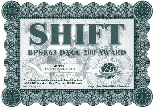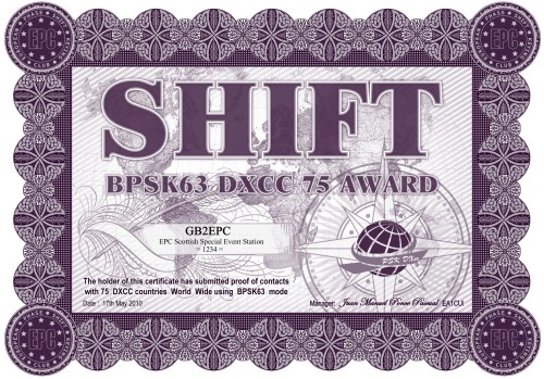 Die SHIFT Diplomserie wurde am 17. Mai 2010 durch den Europäischen PSK Club gestiftet. Damit wurde eine Serie von DX - Diplomen geschaffen, die auf der DXCC - Länderliste basiert.