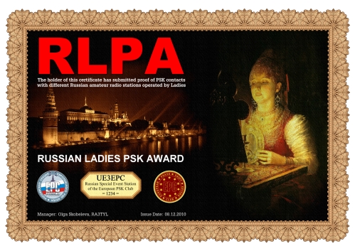 Das RLPA Diplom kann von jedem lizensierten Funkamateur, jeder Klubstation und jedem SWL, entsprechend den EPC-Grundsatzregeln, beantragt werden. Dazu ist es notwendig den Kontakt mit Amateurfunkstationen der Russischen Föderation nachzuweisen, die von Frauen bedient werden. Jeder Antragsteller muss 88 Punkte nachweisen. Jeder Kontakt mit einer russischen YL-Station, die zusätzlich EPC-Mitglied ist, zählt 8 Punkte. Jeder Kontakt mit einer russischen YL-Station, die nicht Mitglied im EPC ist, zählt 2 Punkte. Kontakte mit derselben YL-Station sind in verschiedenen Modi (B(Q)PSK31, B(Q)PSK63, und B(Q)PSK125) möglich.